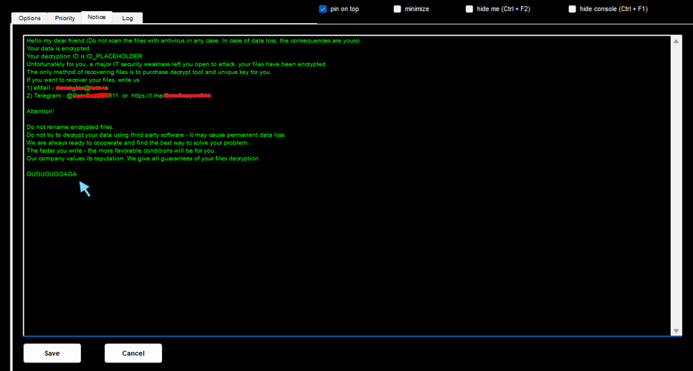 To make life easier for those who need to use the ransomware developer choose to create a GUI, it is as simple as it is practical. The Interface allows the operator to customize the ransomware behavior during and after the encryption, it has some spicy features that make the ransomware very sophisticated