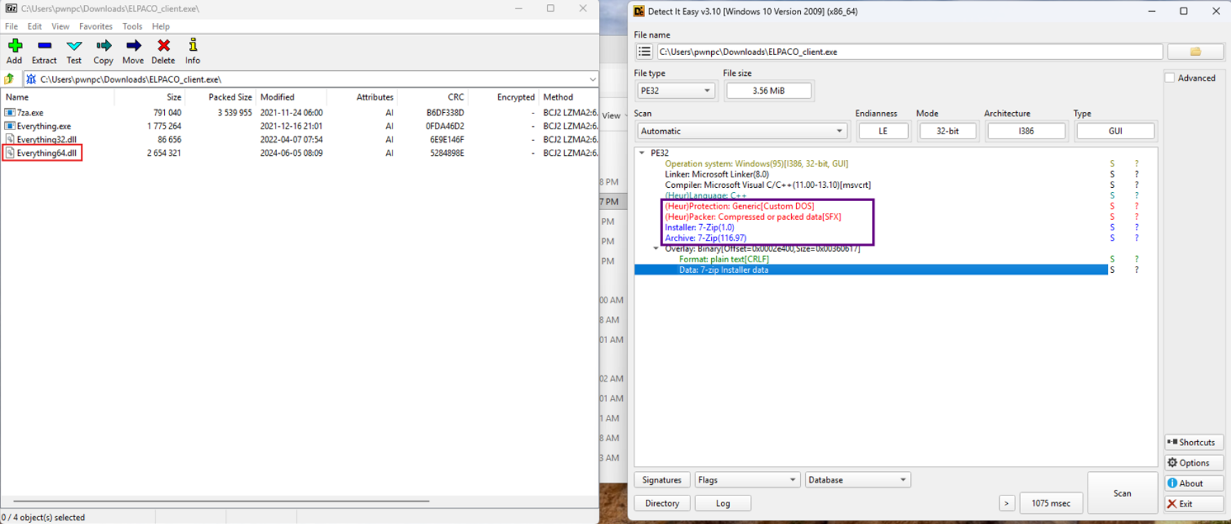 ELPACO is a sophisticated ransomware variant of another ransomware named "Mimic", what they have in common is the use of legittimate softwares other than the main ransomware.