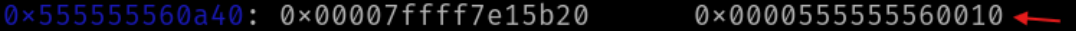Here prev = 0x5..010, victim = 0x5..520, a = 0x5..a40 and b = 0x5..f60