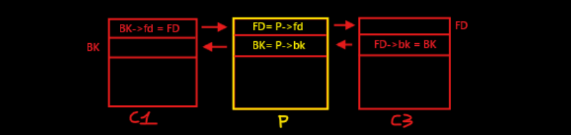This macro update the fd and bk pointers of the chunks adjacent to the freed one