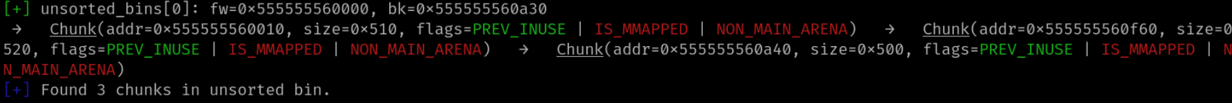 Unsorted bin as you can see in the image above is a double linked list where the header start inside the main arena of libc, this can be useful if you are trying to leak an address from the libc through the heap