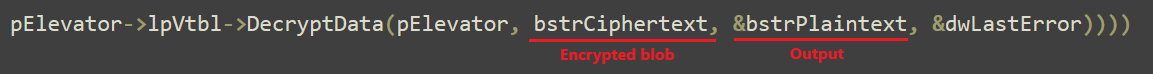 Using the encrypted blob now its time to decrypt it using IElevator::DecryptData