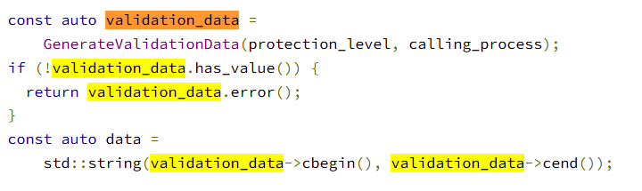 - validation_data is prepended to the plain text app_bound_key, this form the data_to_encrypt