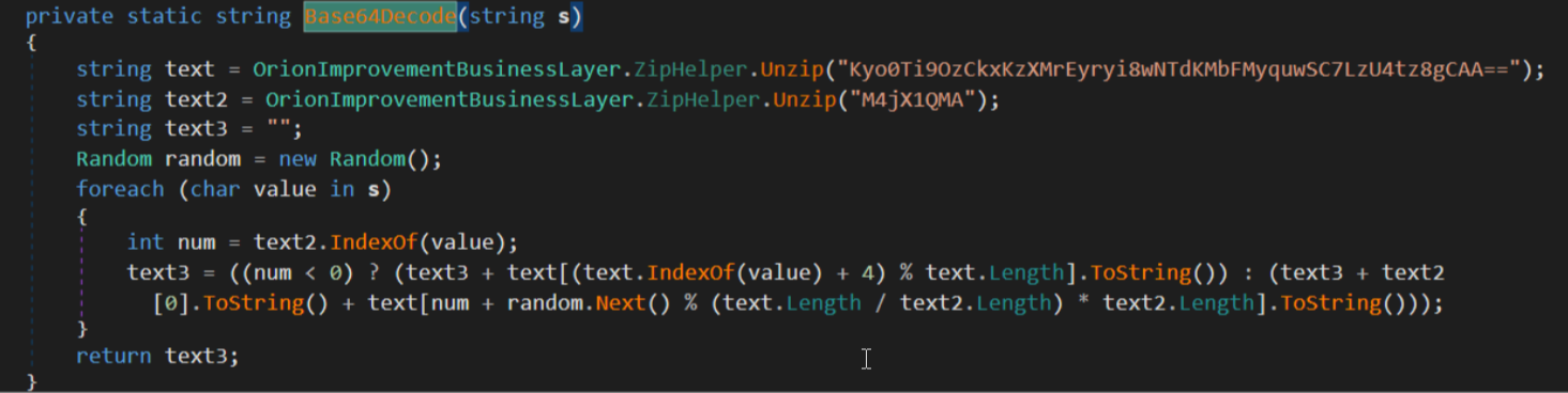 DecryptShort method first check if all the characters of the domain are part of this string: 0123456789abcdefghijklmnopqrstuvwxyz-_. If it is the case the domain will be encoded using OrionImprovementBusinessLayer.CryptoHelper.Base64Decode Otherwise will be prepended with "00" and encoded using OrionImprovementBusinessLayer.CryptoHelper.base64Encode