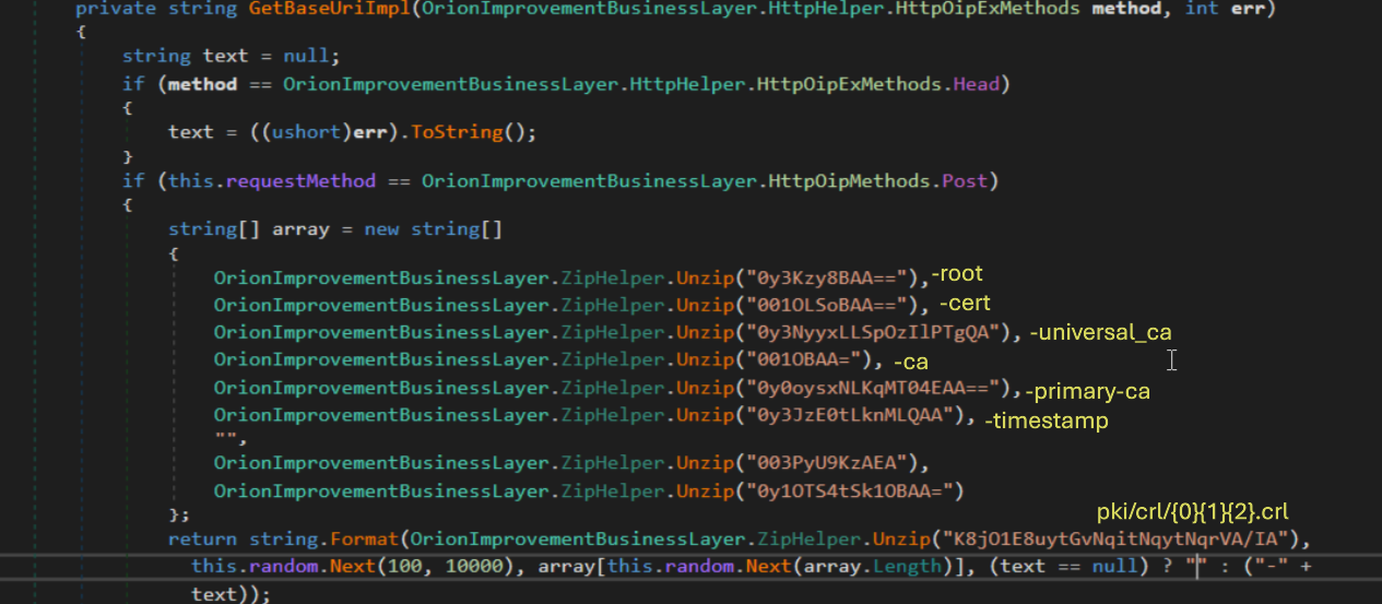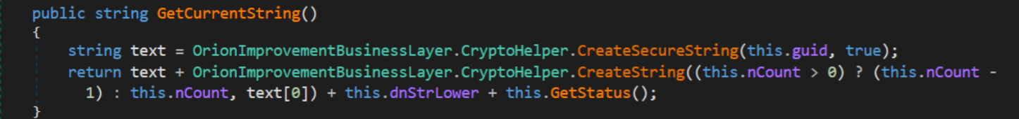 This value is then concatenated with a character generated by OrionImprovementBusinessLayer.CryptoHelper.CreateString.