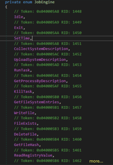 Sunburst capabilities as a backdoor are very basic, inside the program are defined as jobs