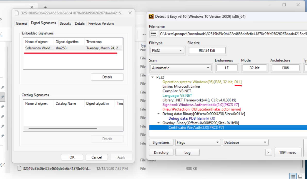 It was inserted into the software build of SolarWinds Orion products using another malware named SUNSPOT (more here) The backdoor was then distributed throught software updates and installers to all of the customersThe backdoor is a 32 bit signed dll wrote in .NET.